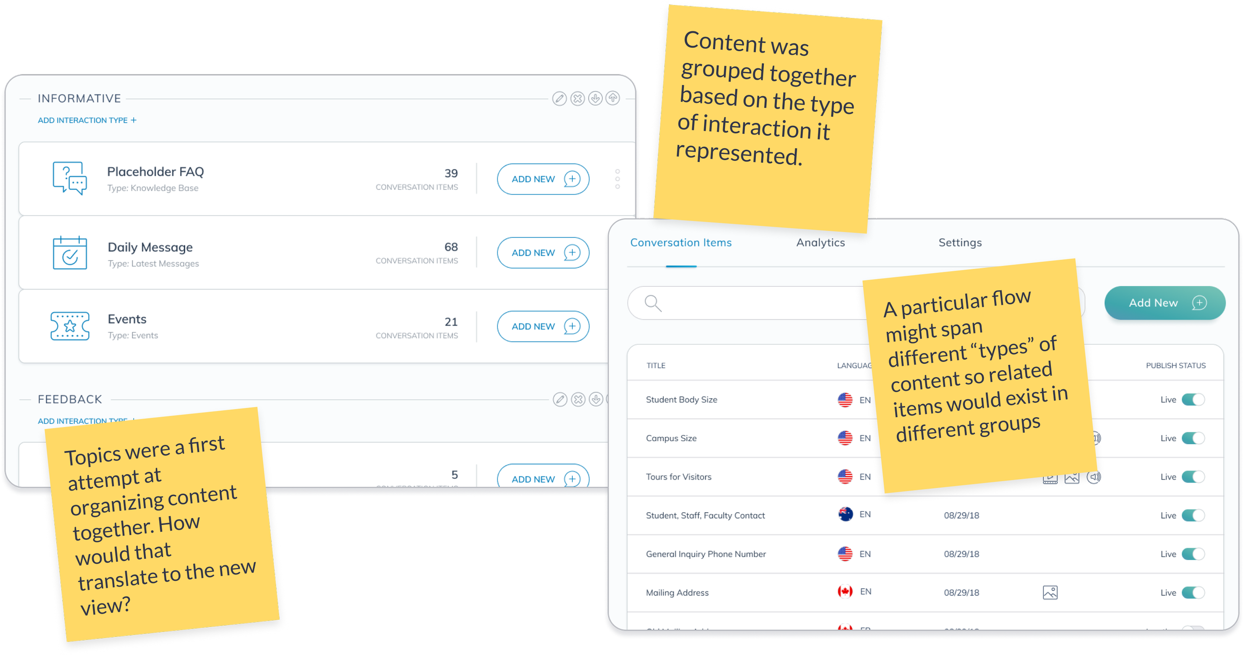 With that goal in mind, how might we allow users to create, manage, and organize their content in a way that enables the swift and effective creation of a conversational experience?