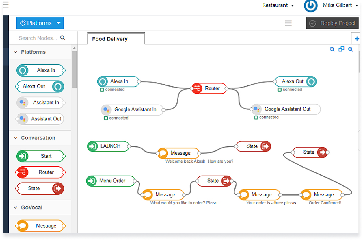 The overarching goal of the platform is to enable users to build a conversational experience, even if they have no technical know-how or domain knowledge within the voice space.