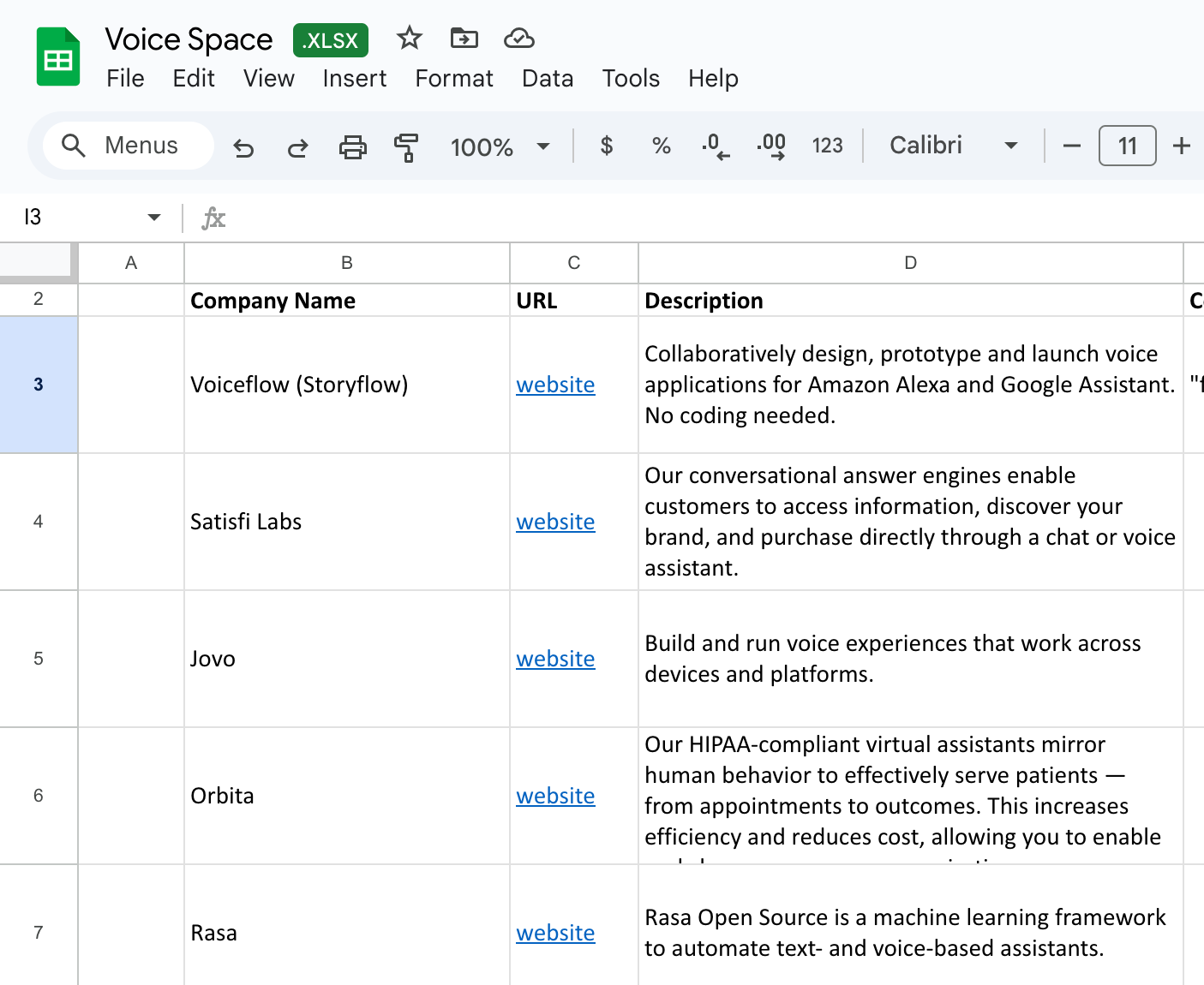 Throughout my time at Voicify I maintained a comprehensive list of organizations within the conversational space and took note of their features, advantages, and challenges.