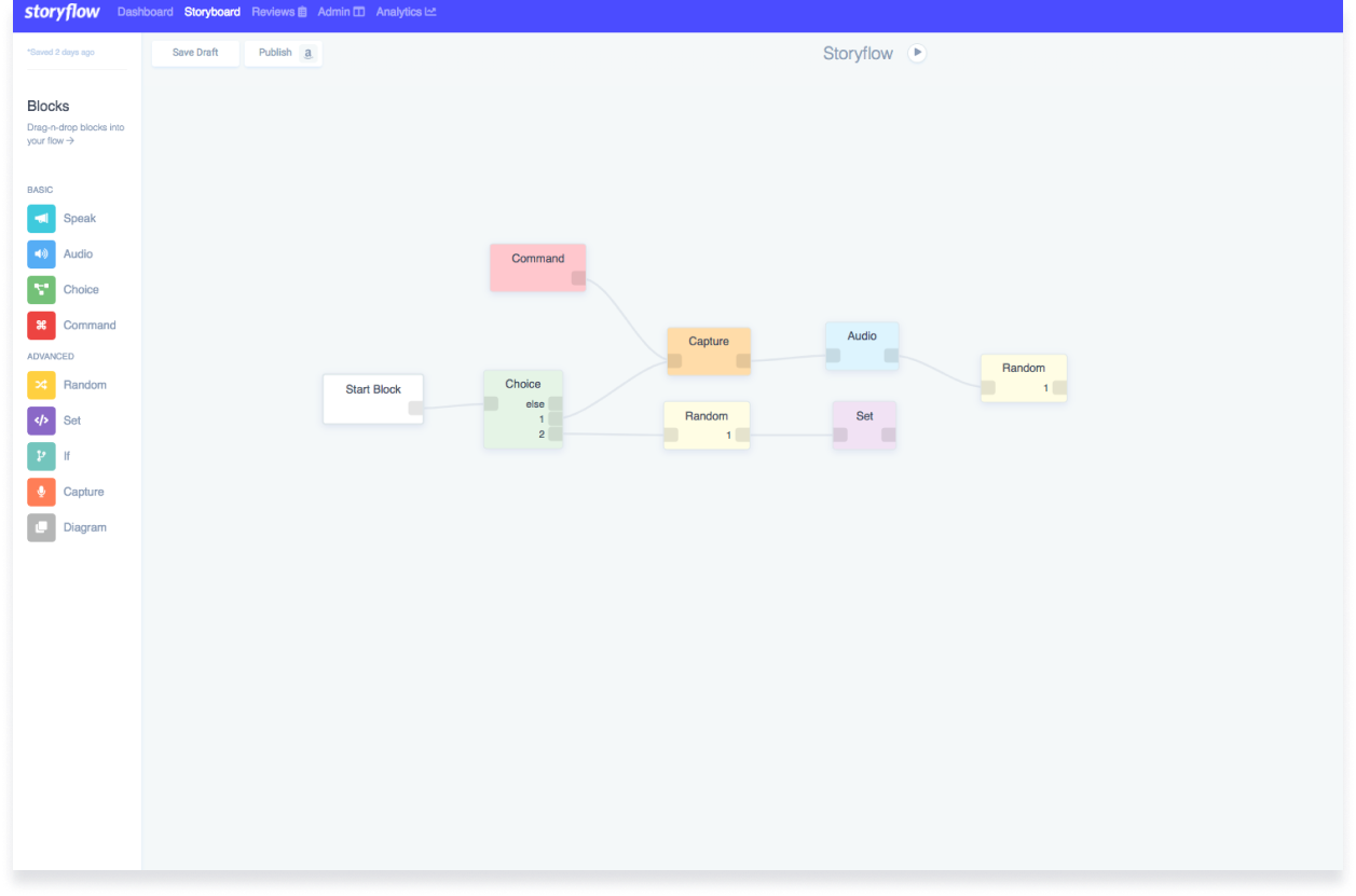 From the outset it was apparent that most platforms in this space relied on linear flows with nodes and arrows connecting them. Our differentiator was that our platform could easily accommodate open-ended conversations and not use such a rigid structure.